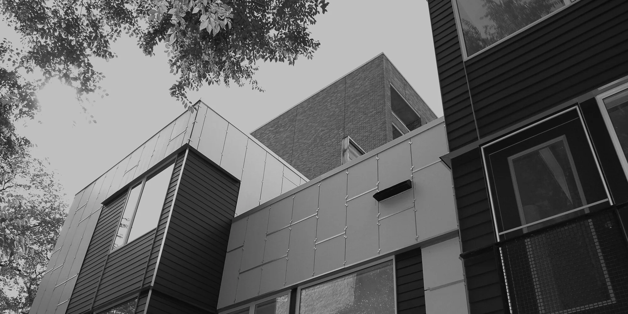 ….Prioritizing ground-level front-door access for each unit, the front of the building was rotated from established streets to face a newly created lane. Fitting seven units and five parking spaces into a restricted property (50 by 130 feet) proved a design challenge. The compact units, along with additional ‘flex' space––to allow the properties to adapt to evolving needs––were woven together to provide each with outdoor space, either at street level or as a balcony. ..Afin de privilégier l'accès à chaque unité par une porte d'entrée au rez-de-chaussée, le bâtiment a subi une rotation par rapport aux rues existantes, sa façade donnant ainsi sur une allée nouvellement aménagée. L'aménagement de sept unités de logement et de cinq places de stationnement dans un espace restreint (50 par 130 pieds) s'est avéré un défi de conception. Les logements compacts, combinés à un espace modulable supplémentaire - permettant aux propriétés de s'adapter à l'évolution des besoins - ont été conçus pour offrir à chacun un espace extérieur, soit au niveau de la rue, soit sous forme de balcon. ….